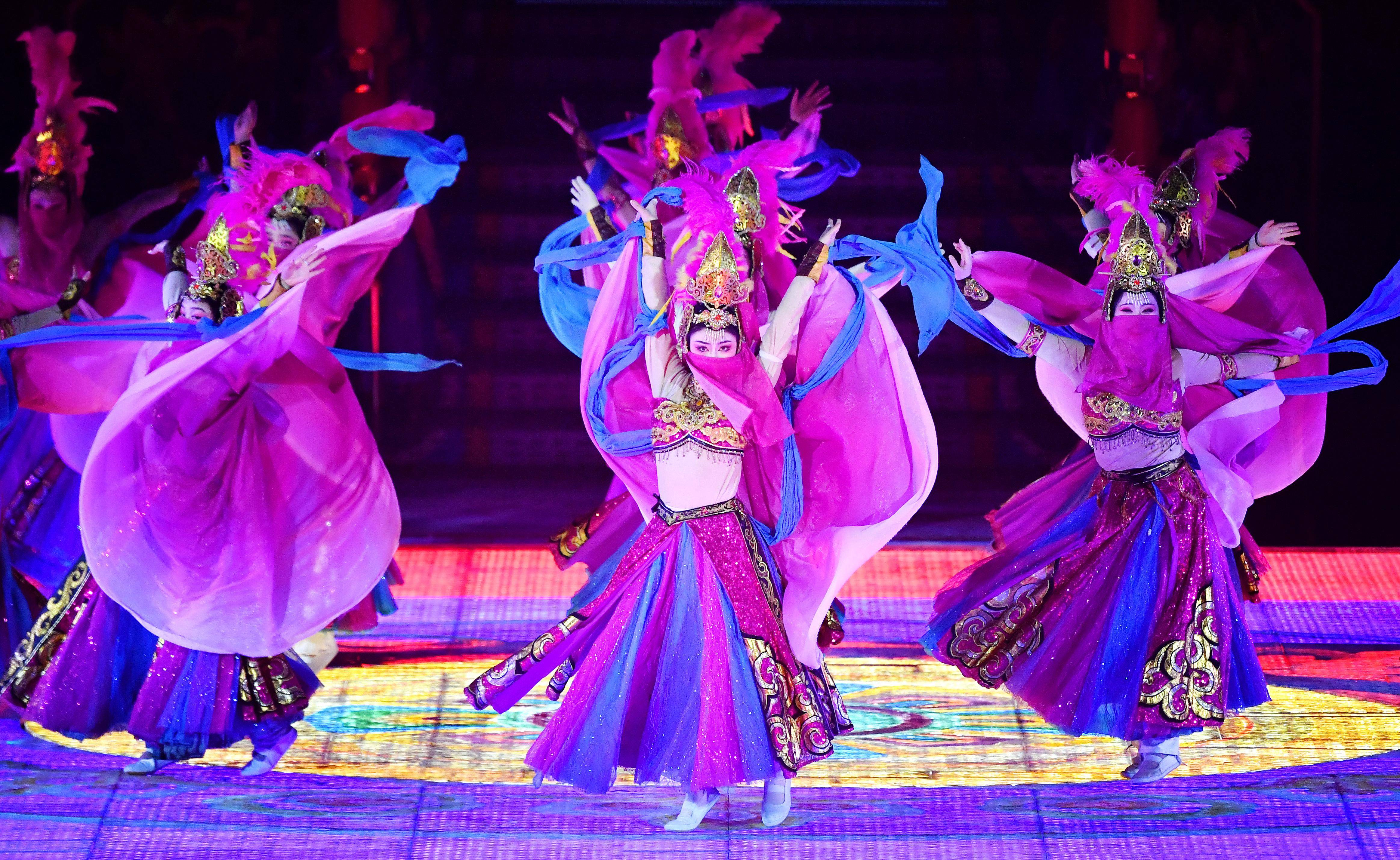 西安实景历史舞剧冬季版冰火《长恨歌》演出现场(1月13日摄)。 新华社记者 刘潇 摄