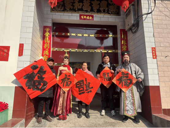 来自该市曲剧团的专业演员们身着唐装、扮作“韩愈”,将一副副镶嵌着韩愈文化元素的春联送到群众手中,送去新春美好祝愿。