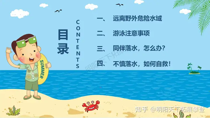 【防溺水安全教育教案】防溺水安全教育夏天到了,很多人都喜欢去海边玩,那么去海边就得注意防水安全。下面是五度学习网分享的防溺水安全。供大家参考防溺水安全