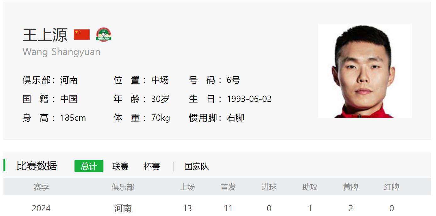 河南队的王上源,在2024赛季里面,出场13场比赛,助攻1个,但是受到俱乐部成绩的影响,他在河南队的发挥并没有上个赛季出色,虽然有1米85的身高,但是在转换节奏、对抗力他没有上去。但是在第一回合里面,他是打进了绝杀之球的,不知道能否还可以复制去年的神迹!
