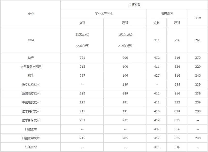 广州医科大学卫生职业技术学院录取分数线