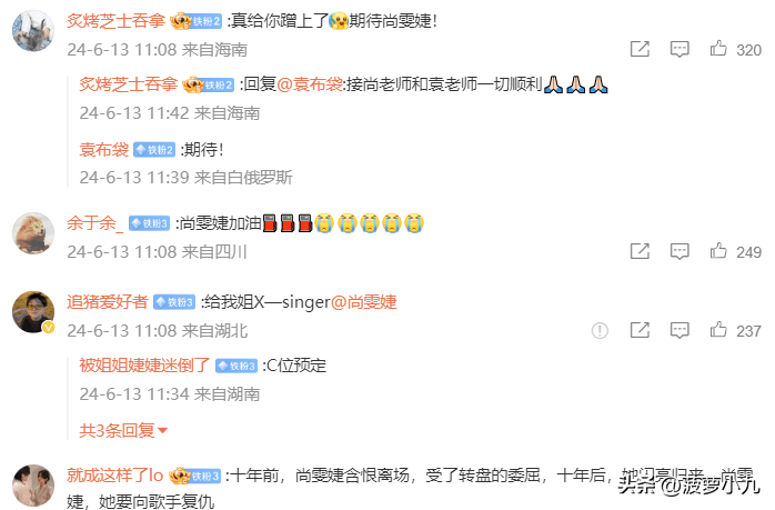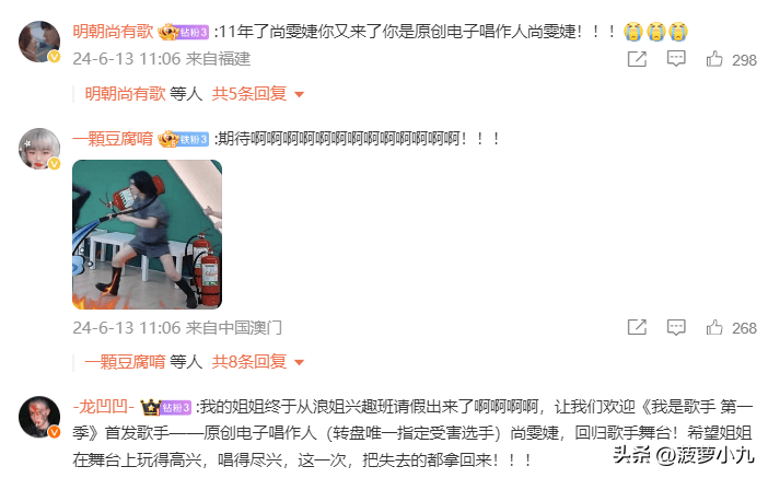 也有网友表示:十年前,尚雯婕含恨离场;十年后,她闪亮归来。尚雯婕,她要向歌手复仇!