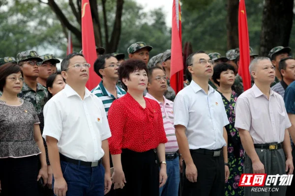 7点20分,升国旗仪式正式开始。湘南学院国防教育大队的同学们英姿飒爽,迈着矫健的步伐,昂首阔步地护卫着鲜艳的五星红旗入场。伴随着雄壮的《义勇军进行曲》,升旗手振臂一挥,鲜艳的五星红旗冉冉升起,迎风飘扬。6000多名师生庄严肃立,面向国旗行注目礼,表达对抗日先烈的缅怀和纪念。
