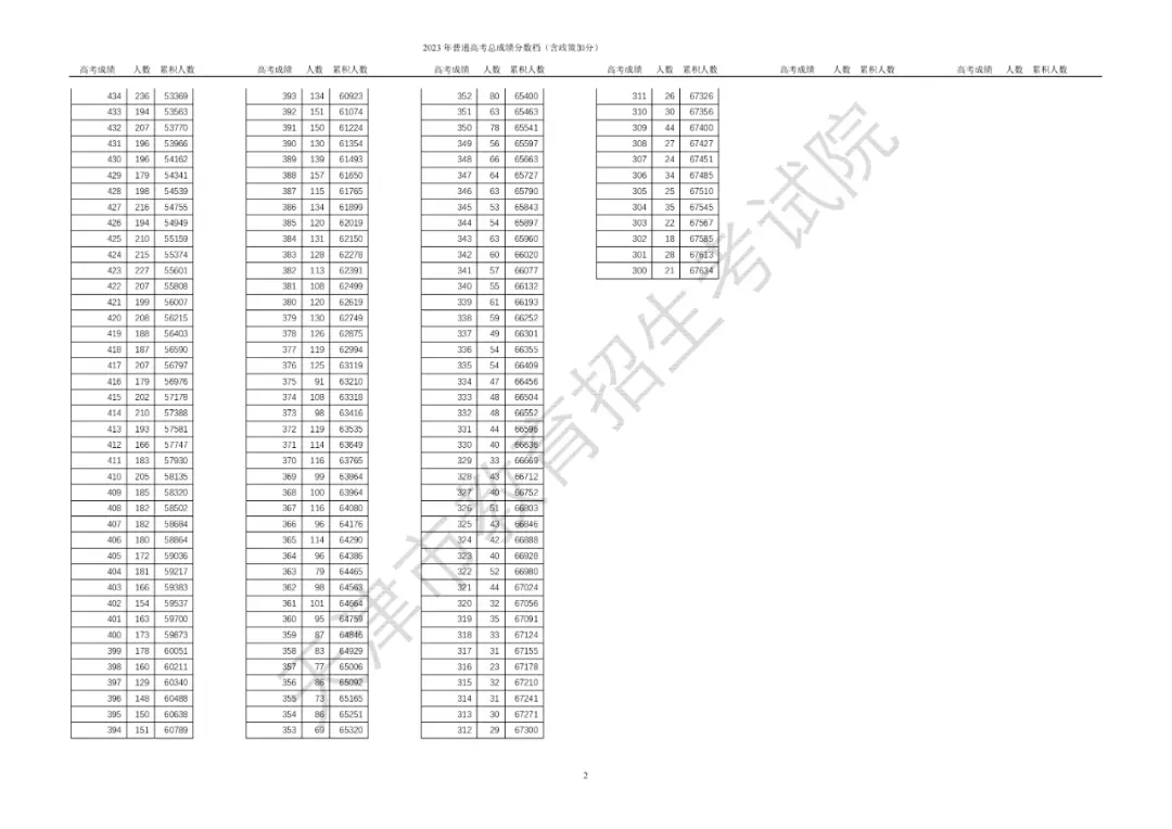2023年高考 总成绩 分数段统计情况