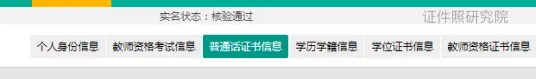 个人信息一般包括:个人身份信息、教师资格考试信息、普通话证书信息、学历学籍信息、学位证书信息、教师资格证书信息。
