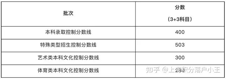 2022年上海市普通高等学校秋季招生本科各批次录取控制分数线经审定公布如下(上海高考本科成绩满分为660分):