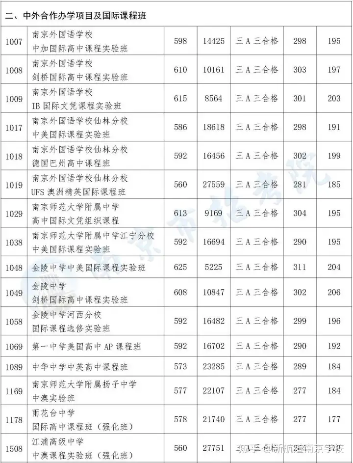 一、南京外国语学校(中外合作办学项目及国际课程班除外)