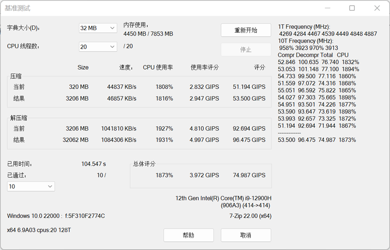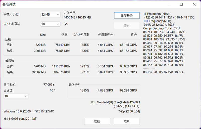得益于DDR5内存带宽的升级,只需约20分钟就完成了测试,整个过程并未出现报错。