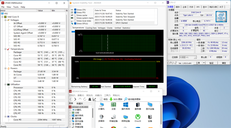 在压力测试中,使用AIDA64测试CPU/FPU/GPU,时长15分21秒,整机温度一直保持在60度上下,温度控制非常到位。