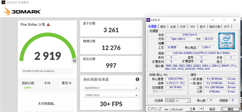 在3DMark Fire Strike中,i5-1155G7的得分为12276分,而i7-1065G7的得分为9175分,两者相差3101分。