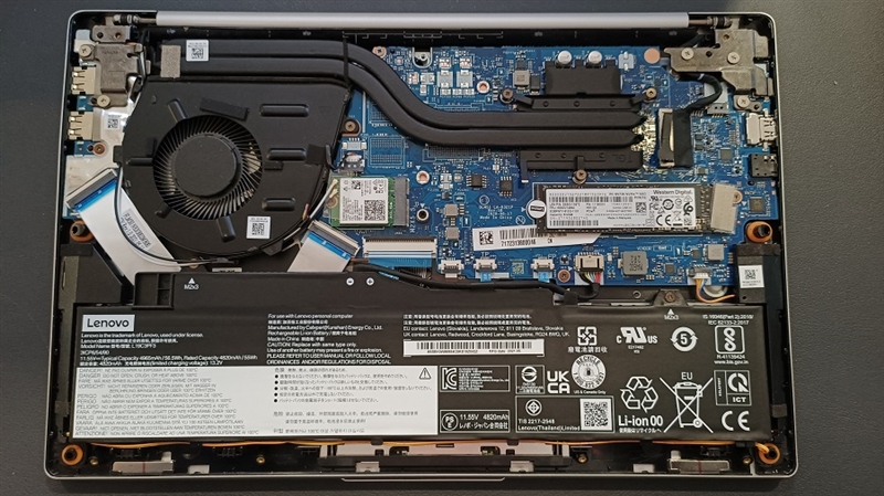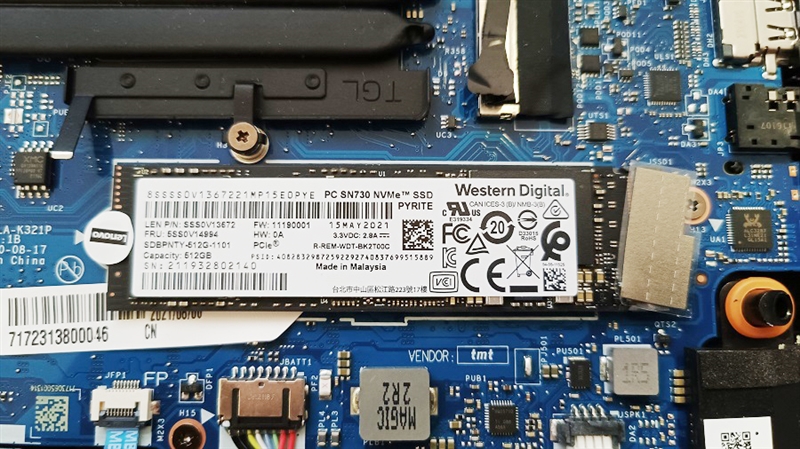 硬盘则是西数SB730 512GB,为了保证机身不至于太厚,较为大胆地没有使用散热片,看来联想对小新Air 14的整体设计相当自信。
