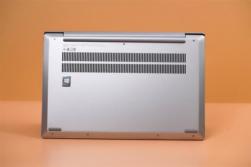 笔记本D面依然比较干净,底部两个防滑脚垫高度始终,顶部则是长条形防滑脚垫,中间则是两排散热出风口。