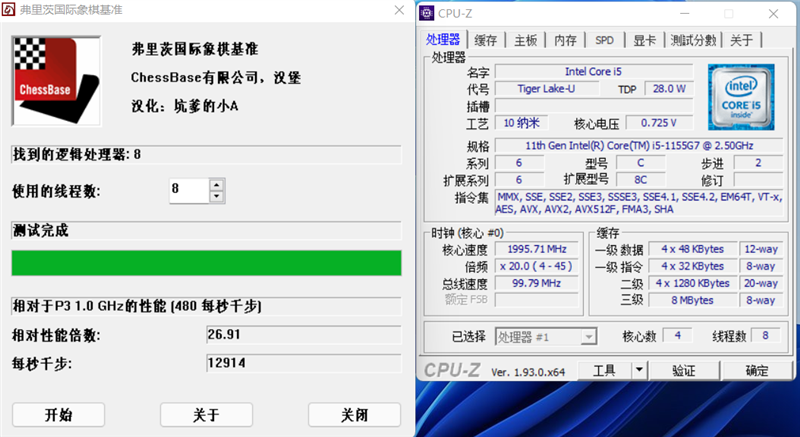 在国际象棋测试中,i5-1155G7的相总得分为12914分。