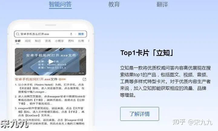 其中,智能问答将以“立知”的卡片形式展示搜索结果。