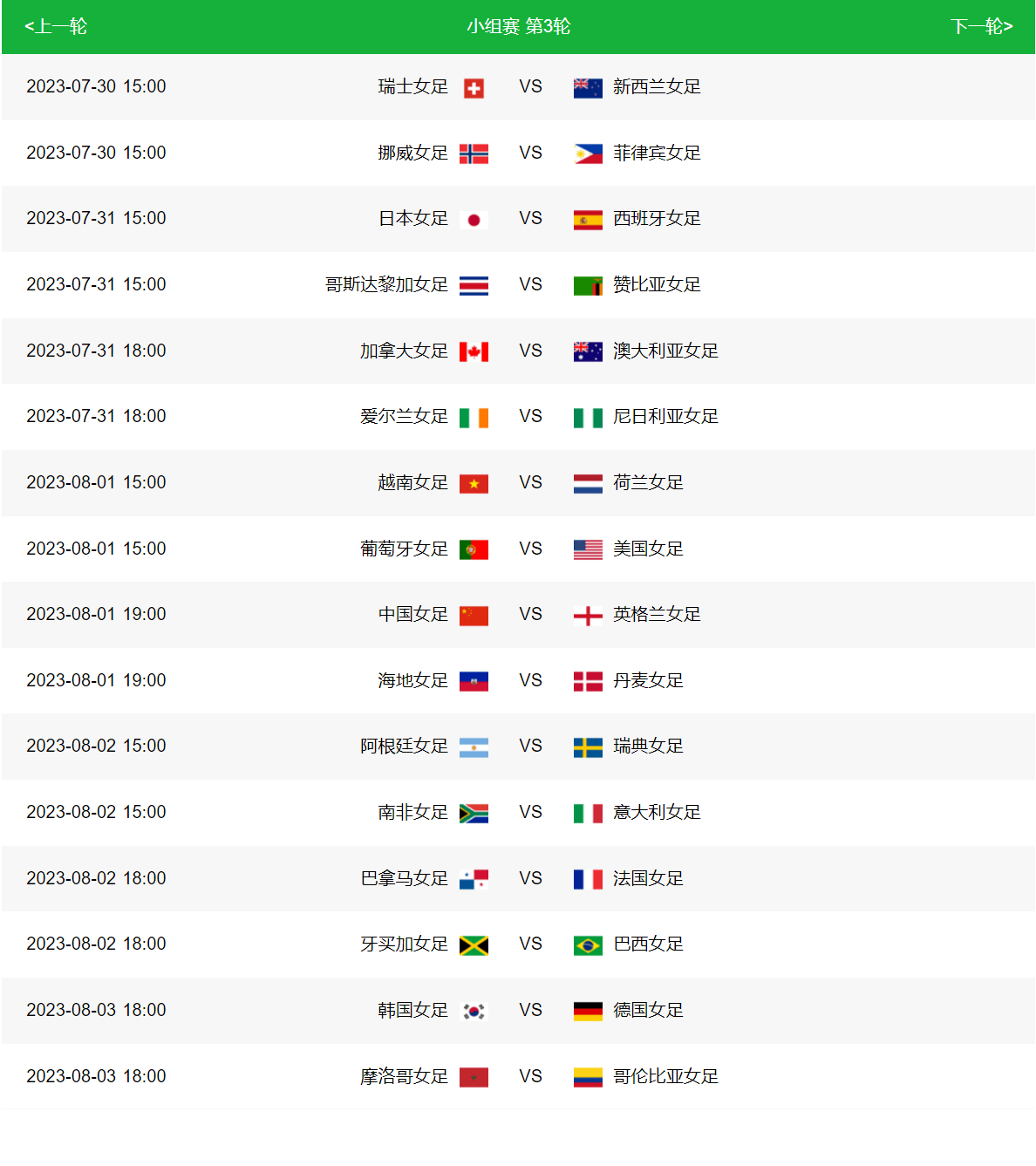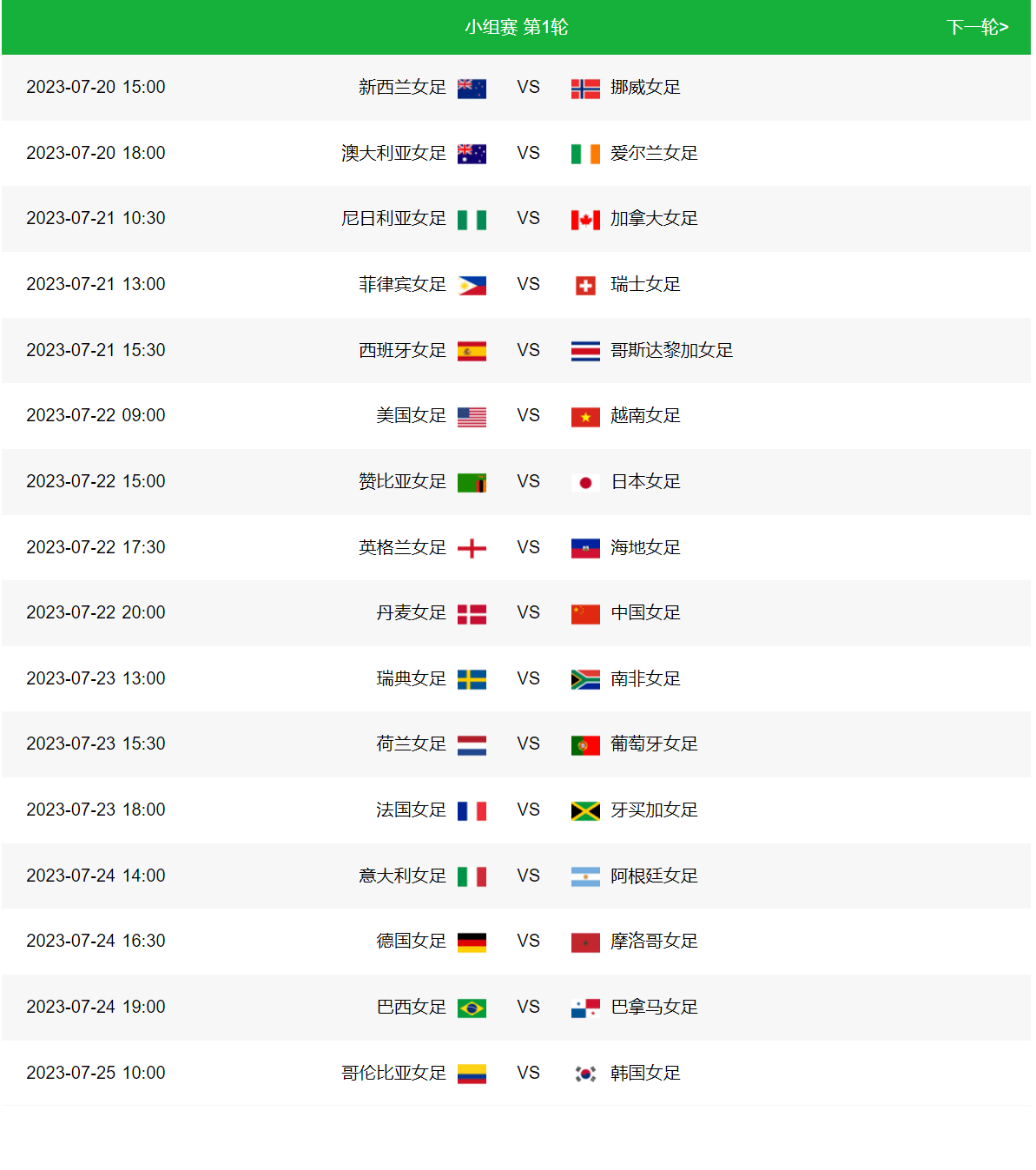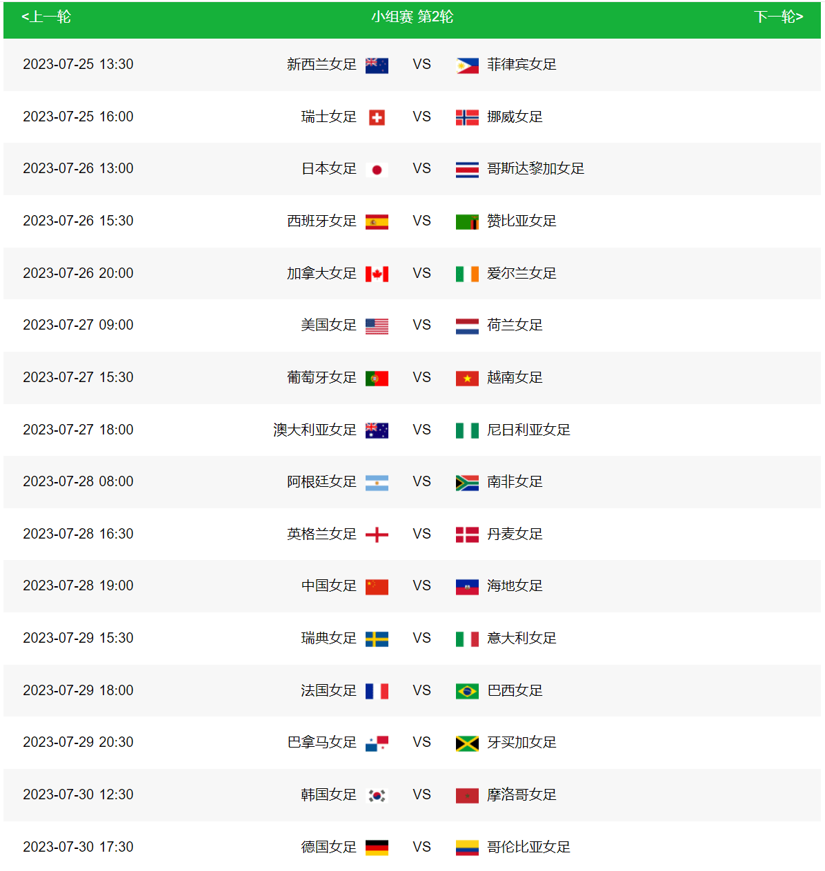 小组赛赛程