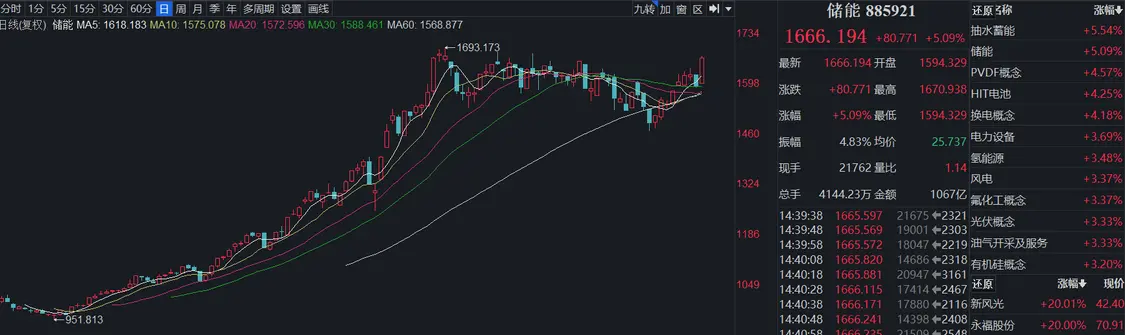 今日(10月25日),储能板块股票全线飙涨,上能电气、新风光、永福股份、盛弘股份、国电南瑞、东方电气、国电南自等,不是涨停就是大涨,令人侧目。