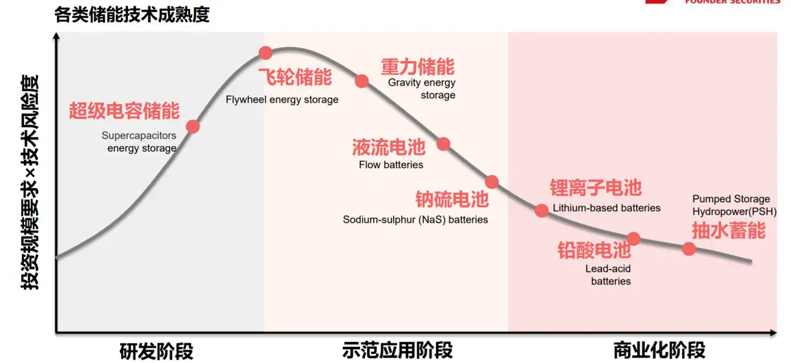 下图为,各储能方式商业化的成熟度