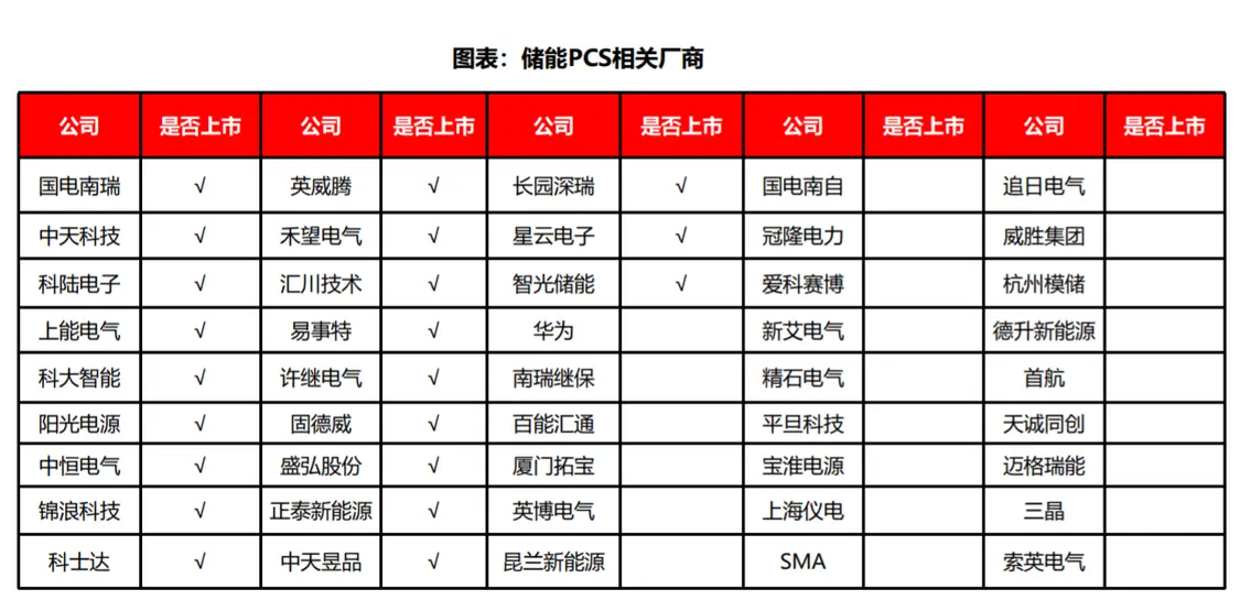 从储能变流器(PCS)看,国电南瑞、阳光电源、固德威、英威腾、汇川技术、锦浪科技等都是A股PCS较为领先企业。当然,还有一个未上市的绝对龙头,华为。