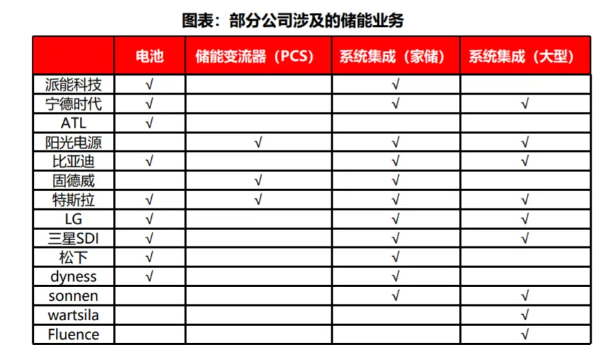 而部分涉及储能业务的A股主要公司有派能科技、宁德时代、阳光电源、比亚迪、固德威等。
