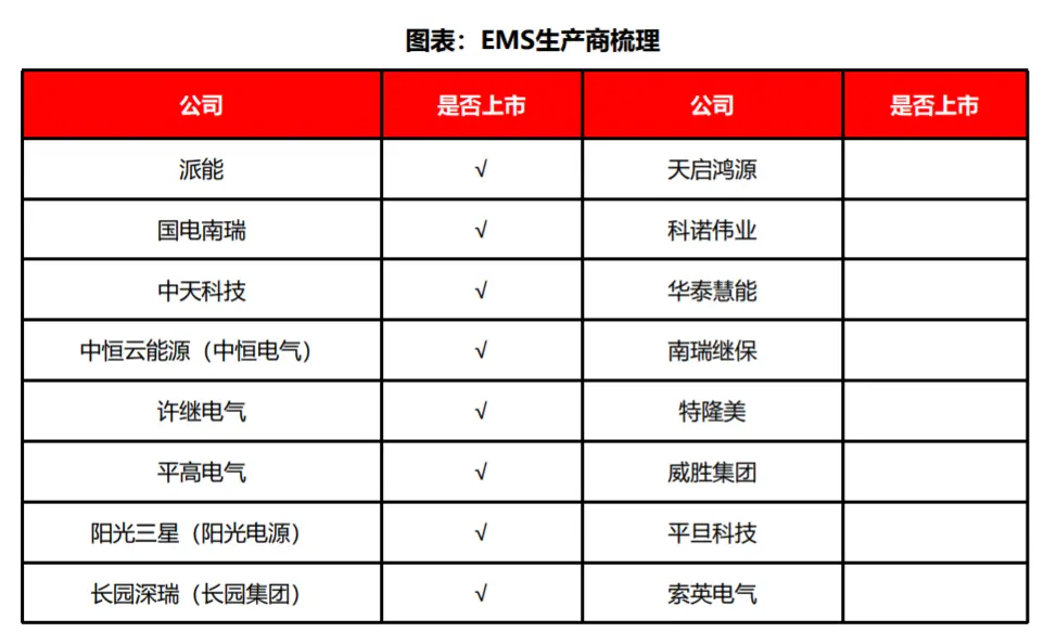 从能量管理系统(EMS)看,当前国内有关企业大概有16家,其中有7家为上市公司,主要是国网系的公司。