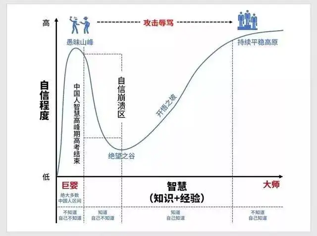 在内部管理上,王慧文认为有担当的管理者有一个重要的责任,就是把下属从愚昧山峰推向绝望之谷,至于能否爬上开悟之坡,就只能看个人造化了。