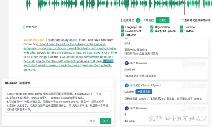以前从来没接触过这种【精批系统】,以前都是和老师面对面批改,这样我就很容易会忘记老师说的某一些重要的知识点。导致自己的写作、口语进步不是非常明显。