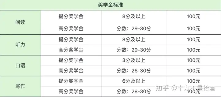 所报名的科目获得高分或者显著提分,可获得奖学金。提分和高分只能领取满足条件的一项,两者不叠加。奖学金标准如下: